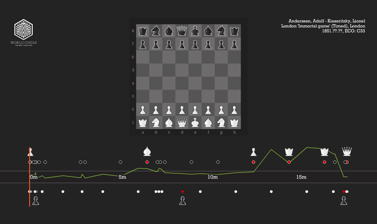 Initially we focussed on the playback of previously-recorded games using existing chess notation, working with Matt Biddulph of Dopplr who developed up a Ruby/Heroku application to do just this. This allowed us to study the ebb and flow of games, as well as get to intimately know the main events and constructs which make up games.
