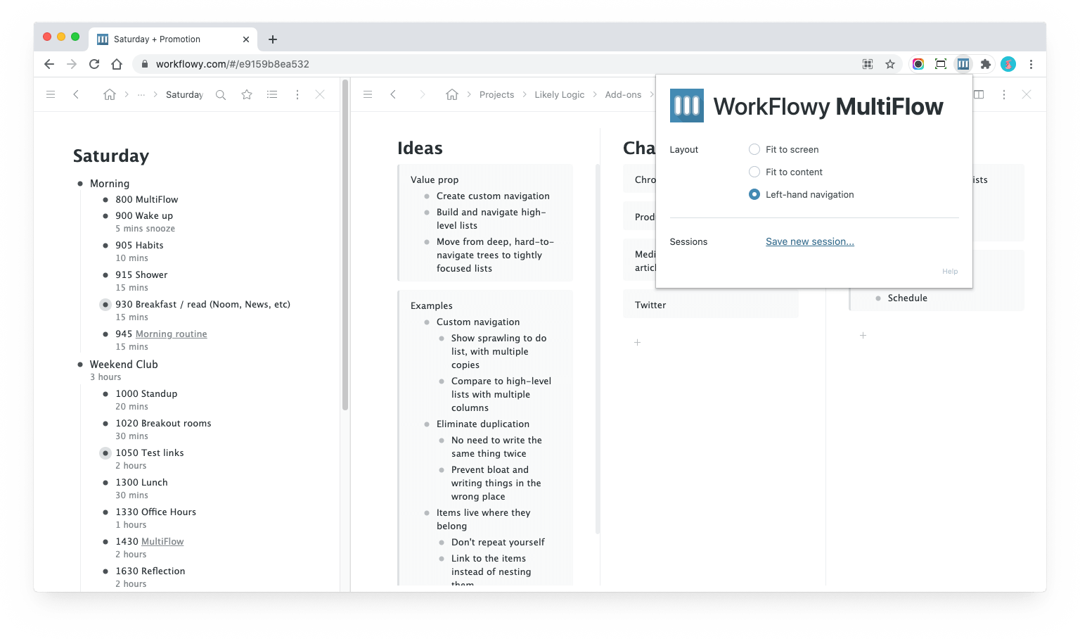 WorkFlowy MultiFlow - Columns view for WorkFlowy | Product Hunt